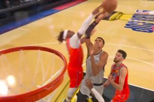 太刺激了!文班亚马过人冲击篮筐 多特杀出来直接送出大帽